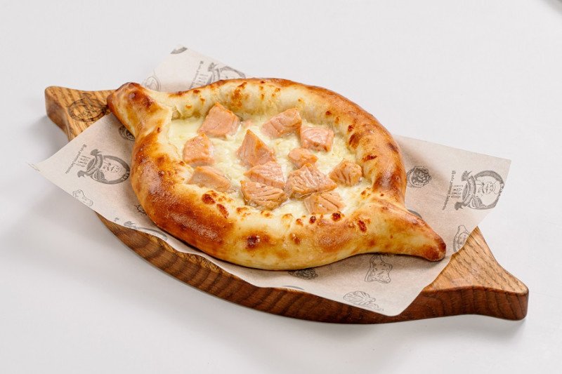 Грузинская лодочка с имеретинским сыром и нежным запеченным лосососем